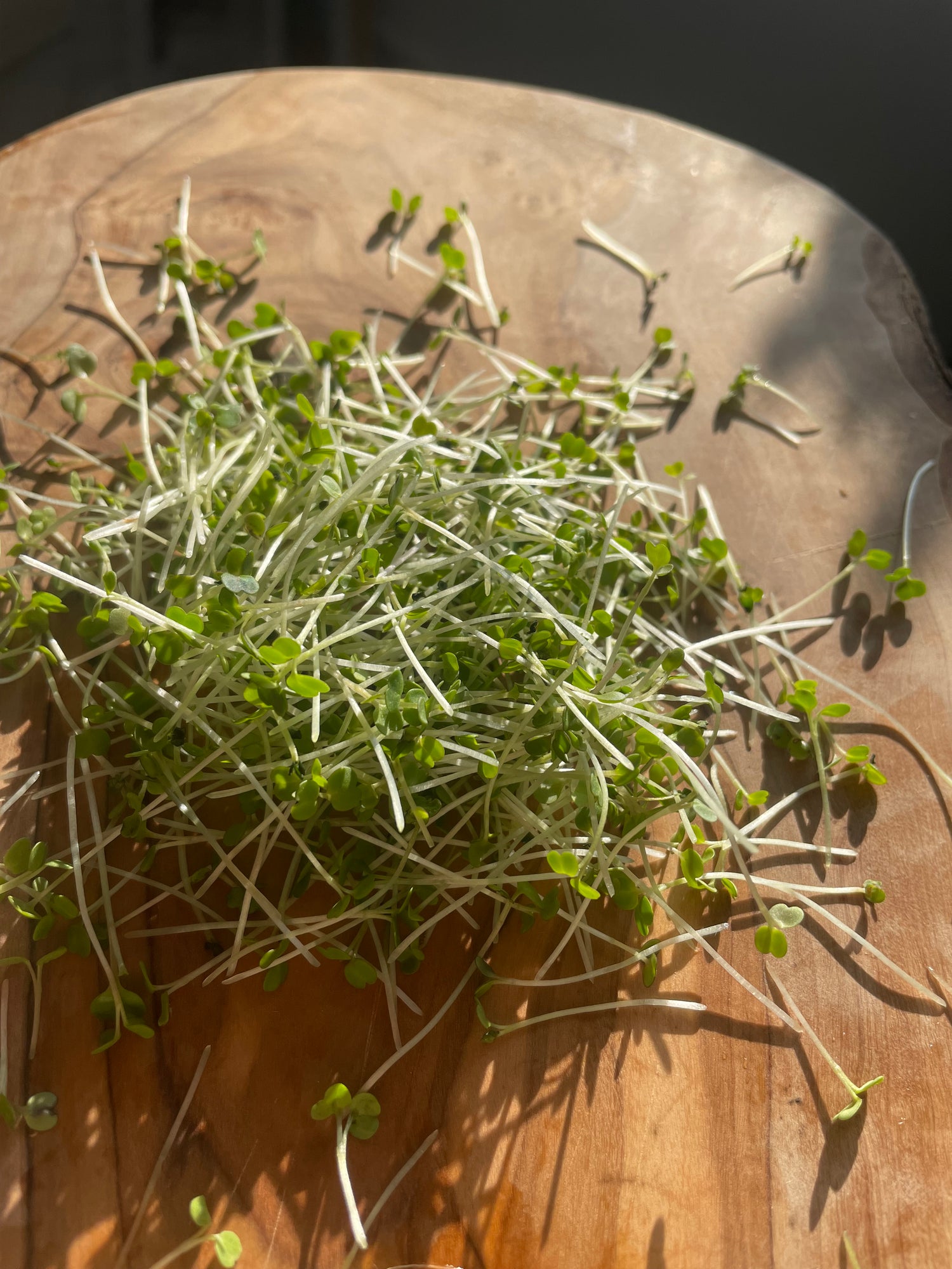 Bis zur Ernte bilden deine Microgreens in der Sonne ihre Farbe, ihre Stängel und Blätter aus. Achte auf genug Feuchtigkeit und Helligkeit. Lassen die Microgreens ihre Stängel hängen, liegt es meist an zu wenig Wasser.